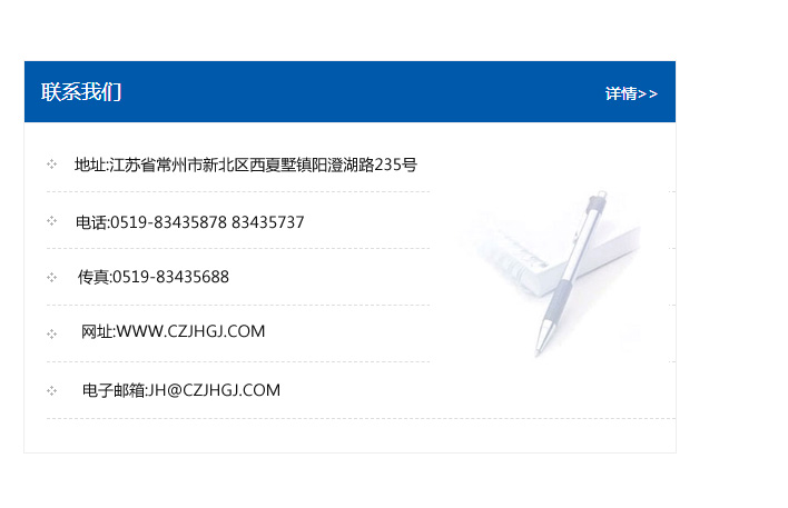 地址:常州市新北區友邦商務大廈1幢16、17層  電話:0519-85101652  傳真:0519-85112595  郵編:213022  網址:www.cz-jiayue_cn.ncgglm.com  郵箱:xiajifengaa@163.com